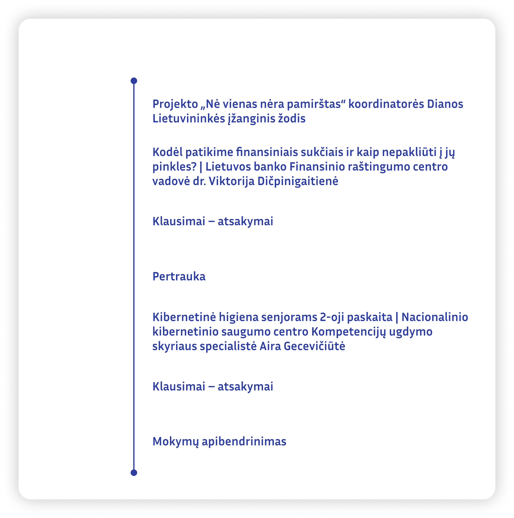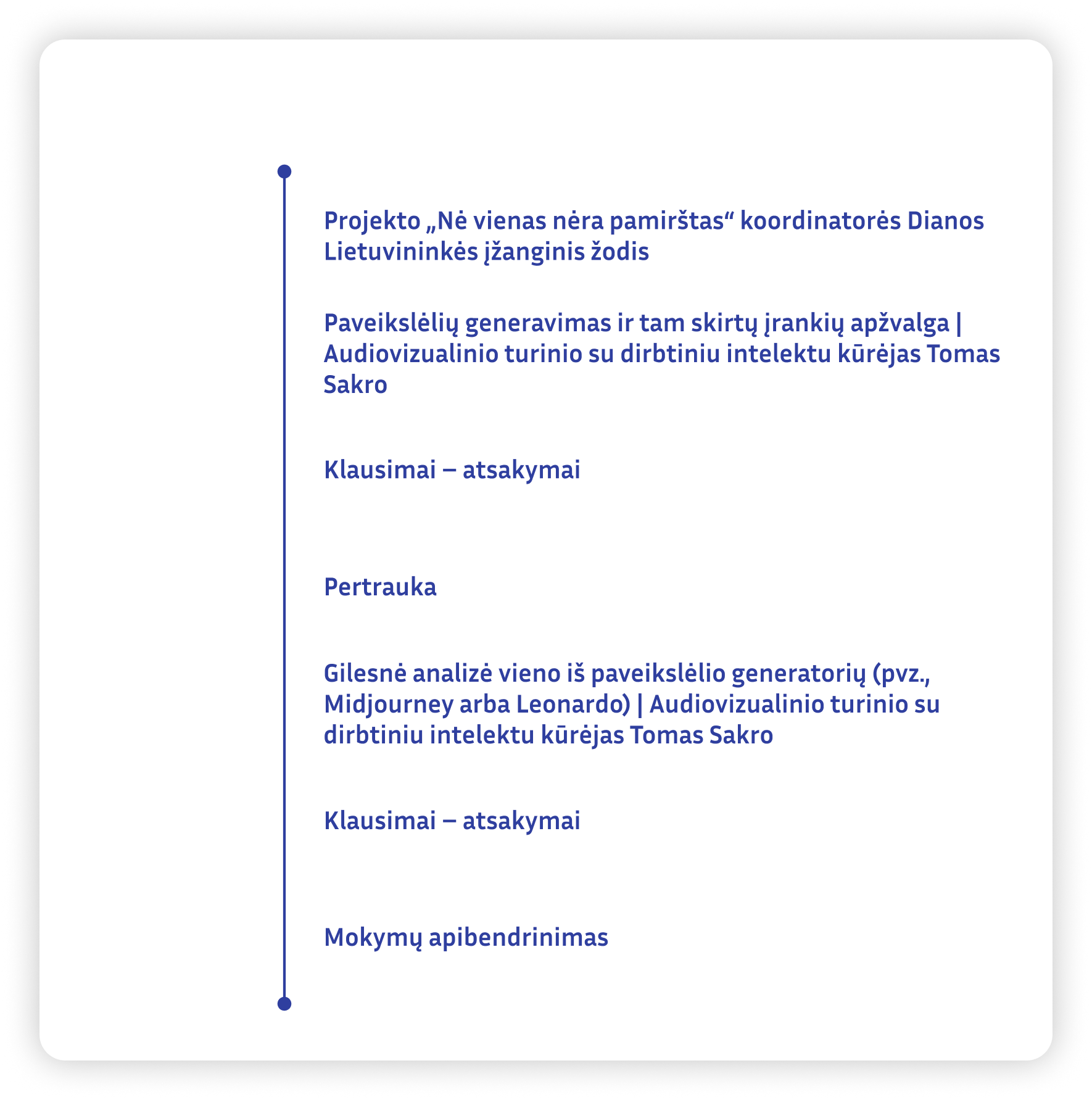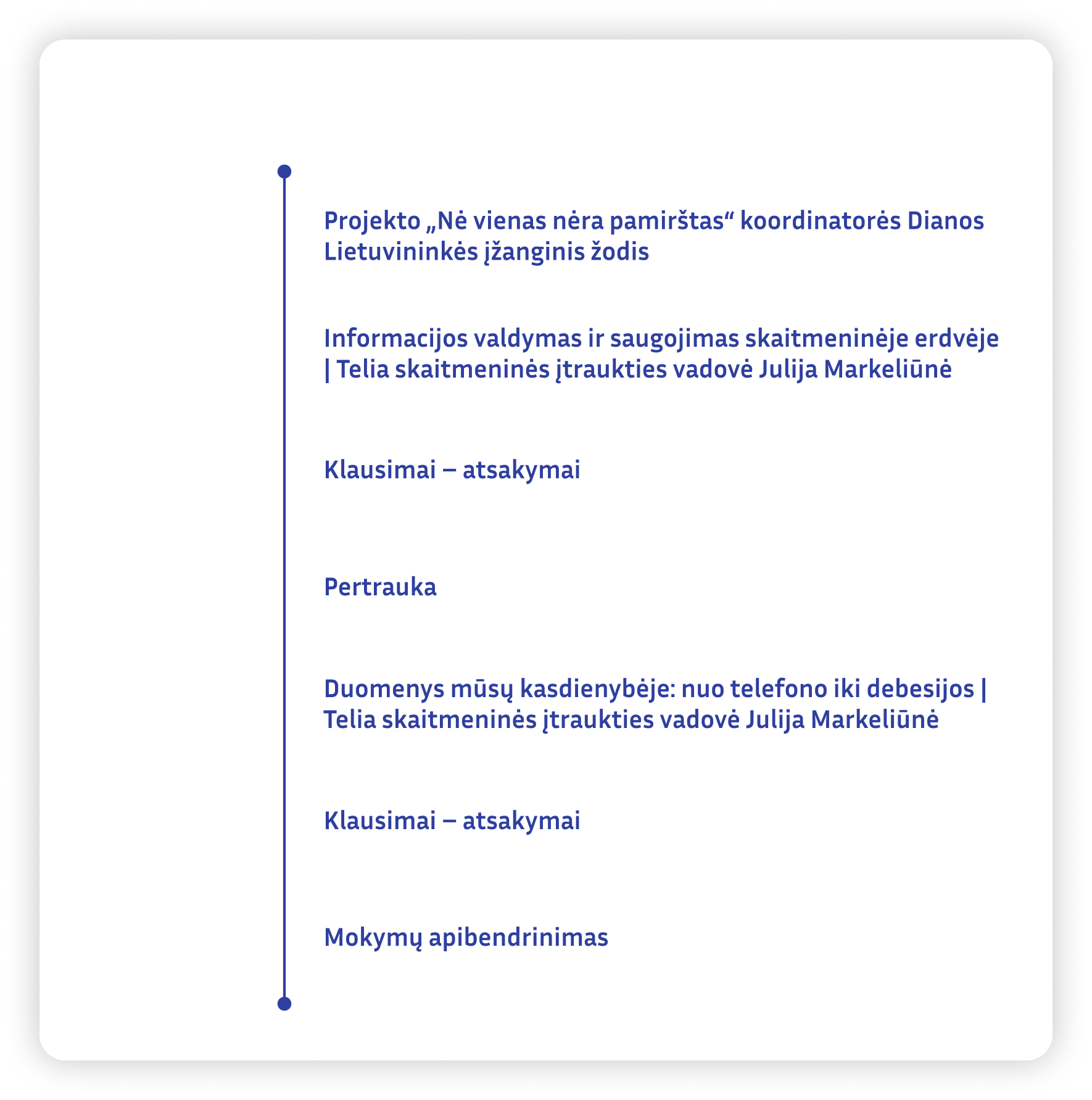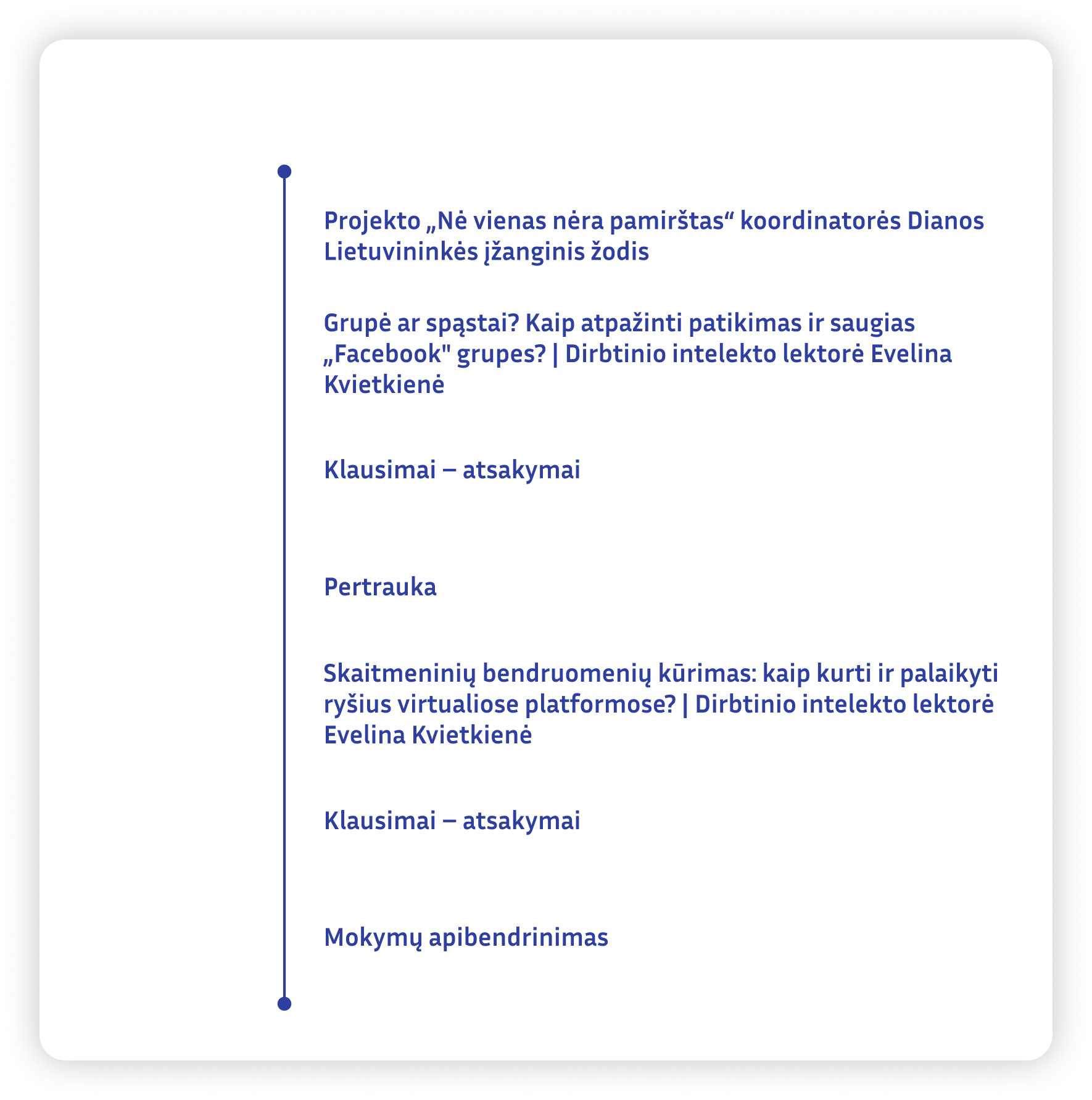 Programa sudaryta remiantis Europos Komisijos penkiomis teminėmis dimensijomis: