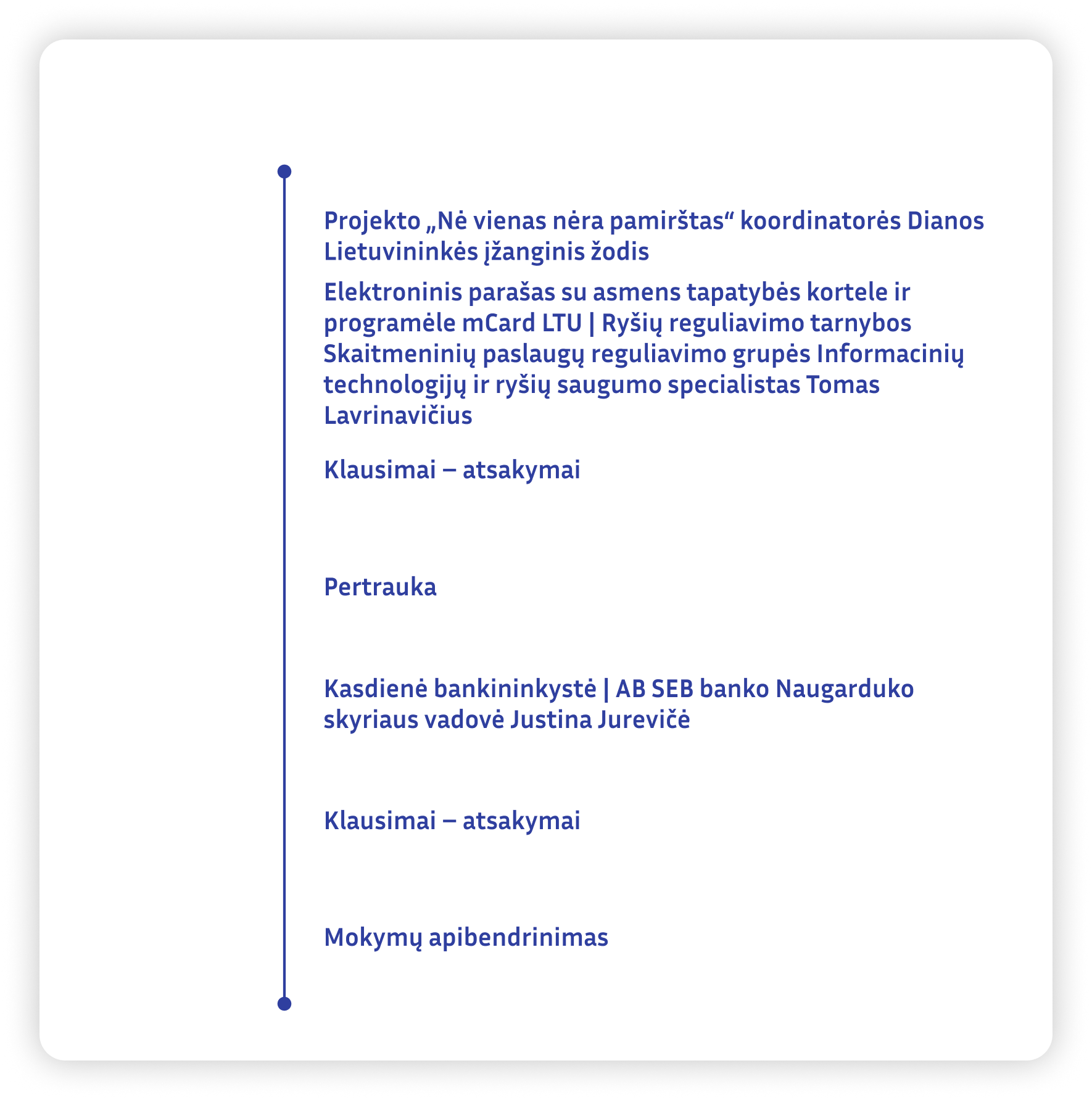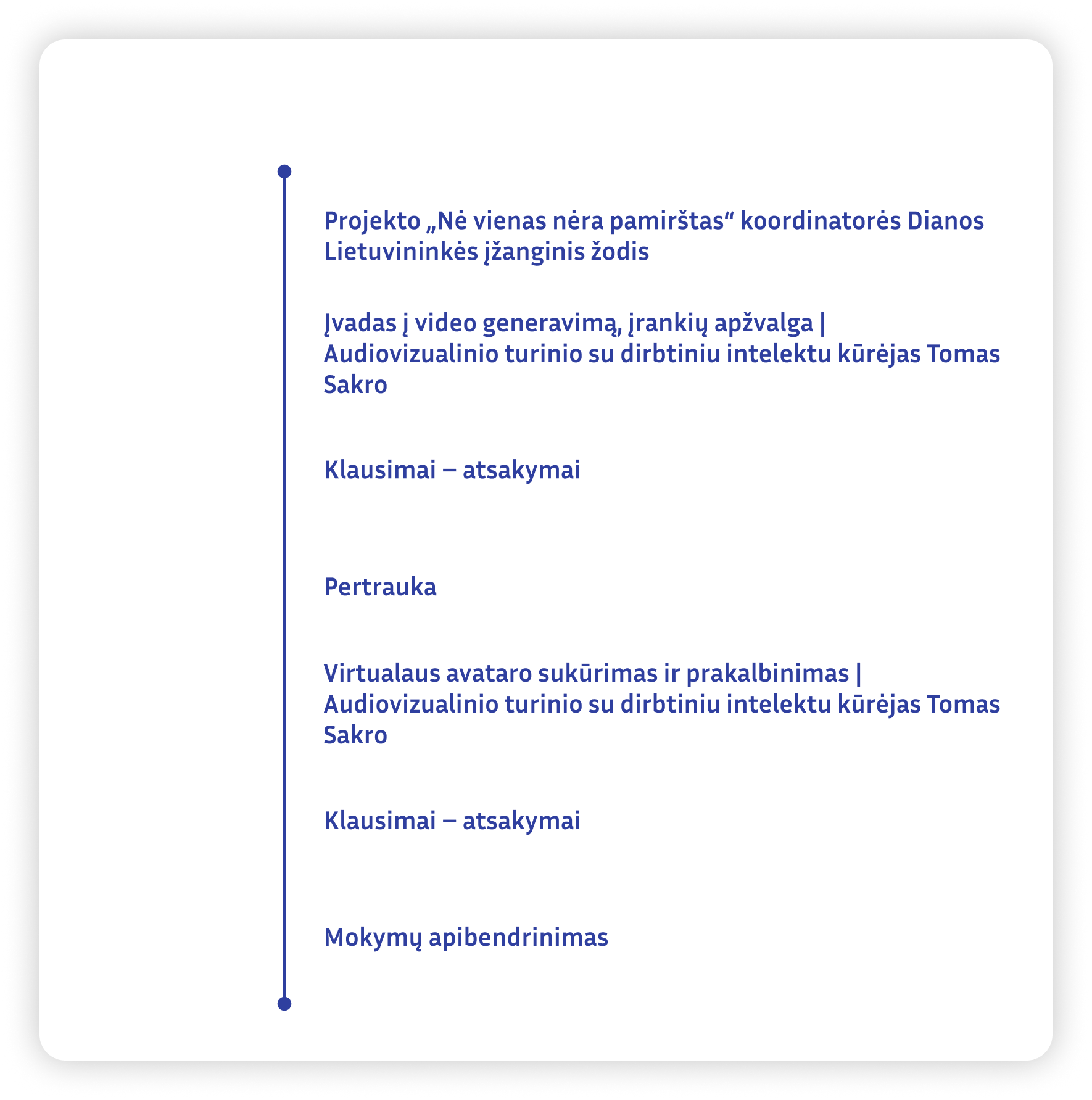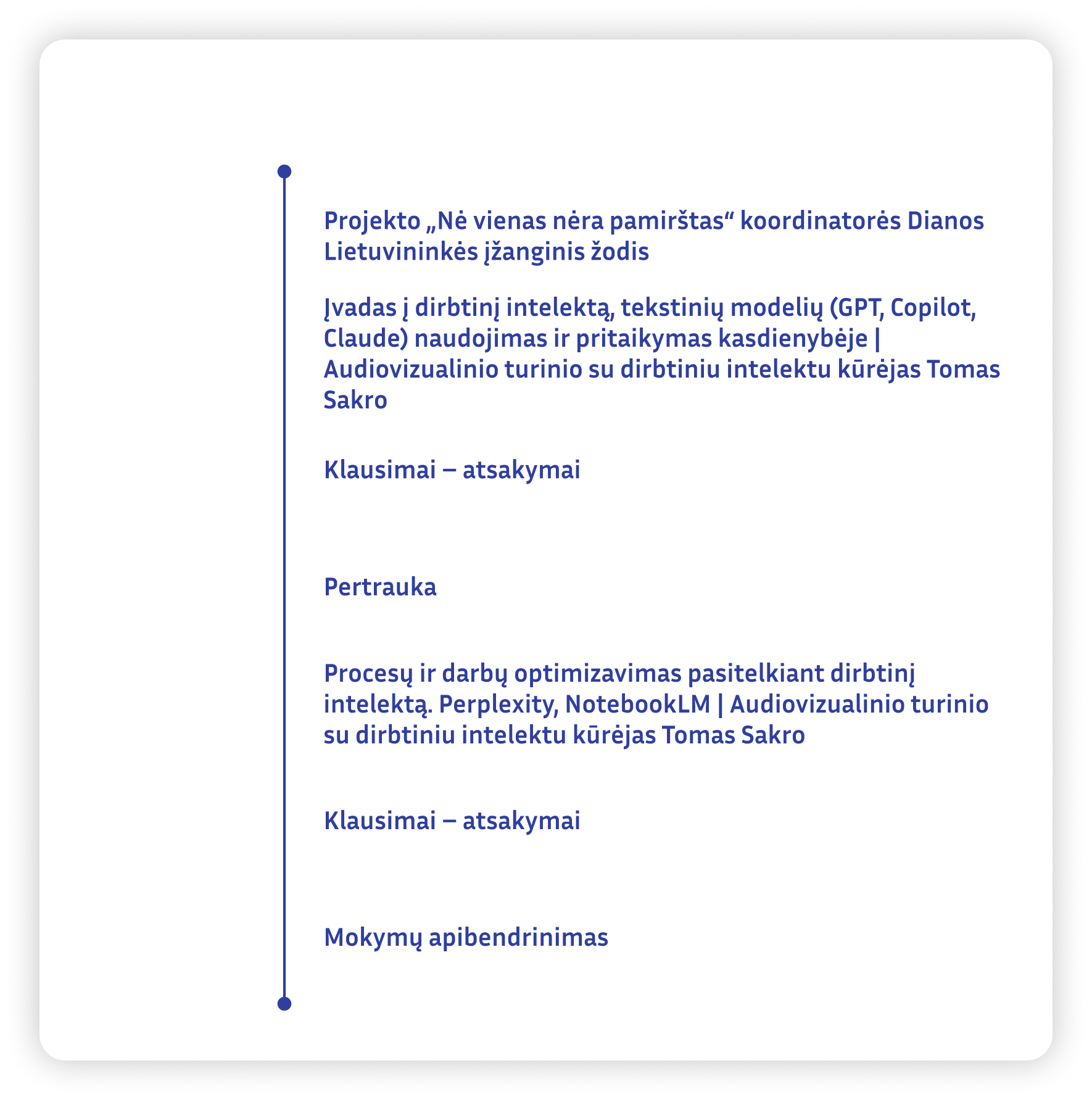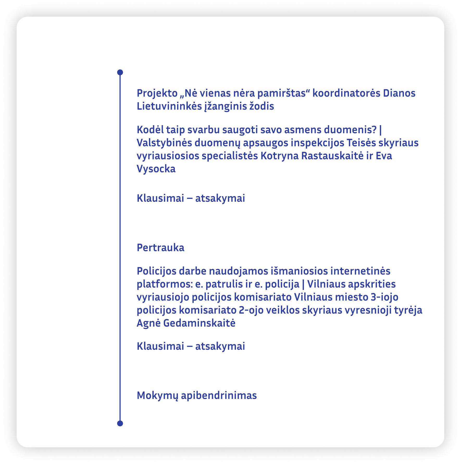 Programa sudaryta remiantis Europos Komisijos penkiomis teminėmis dimensijomis: